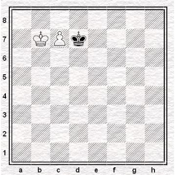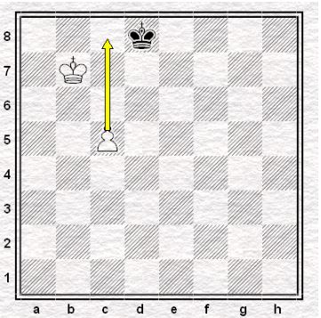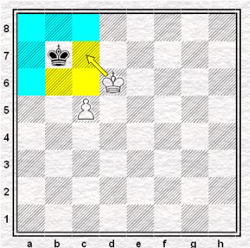 By doing so, the White king have stayed in front of the pawn while reducing the Black king’s escape routes to just b8 and d8.