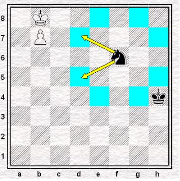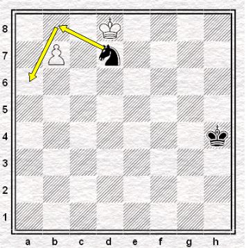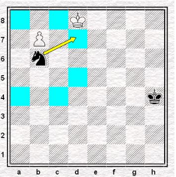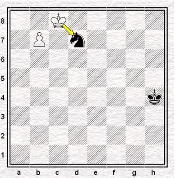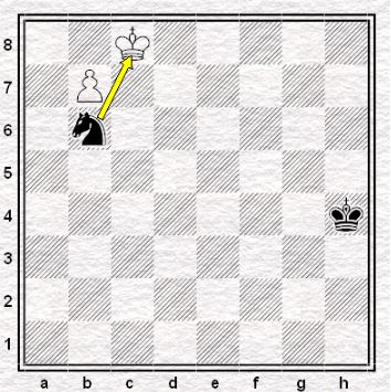 Now the knight is trying to delay the pawn’s advance by checking the king. However, White has to simply move away without blocking b8.