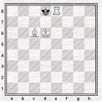 This is not an endgame that you need to be in a hurry to learn, as it happens only very, very rarely. Not only is it rare, but it is also drawing—if the weaker side knows what it’s doing, that is. If it doesn’t, you can eventually push it into a position similar to the diagram one, when then the only way to win is to understand the maneuvers that are called for.